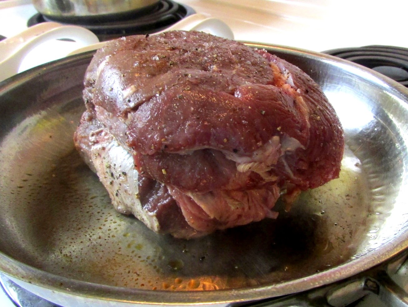 In a hot pan with hot vegetable oil I seared it on all sides. This was good!