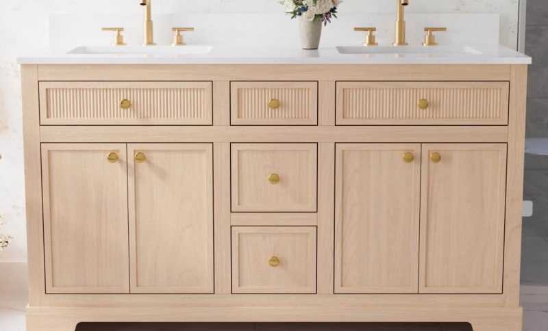 When the cabinet width is less than 60 inches, the double-basin configuration often results in a single washbasin width of less than 18 inches, increasing the likelihood of water splashing out during use, and the storage drawer is forced to be shorter.