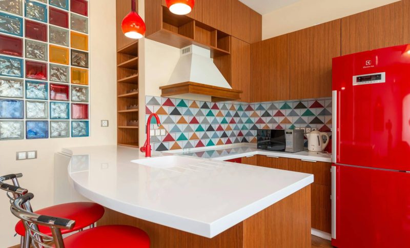 Warm colors naturally stimulate conversation and appetite, which makes them ideal for social kitchens.