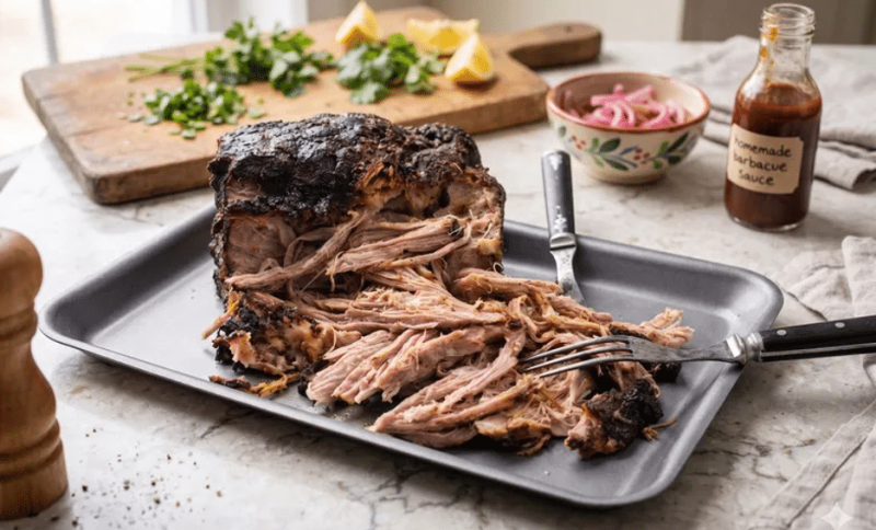 - Rest and Shred: Transfer the hot, wrapped meat into a dry, insulated cooler. Close the lid and let it rest for 1.5 to 2 hours. After resting, unwrap the shoulder, effortlessly slide the bone out, and use two meat claws or large forks to pull the pork apart. Toss the shredded meat thoroughly in its own rendered juices before serving.